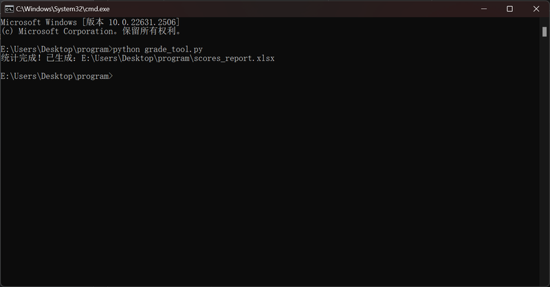 本项目是一个基于 Python 的成绩统计与 Excel 自动化小工具,支持从原始成绩表中读取学生成绩数据,自动计算总分、平均分、排名和绩点,并按照班级或科目生成新的统计表。用户只需要在命令行或配置文件中指定输入、输出文件路径,即可一键完成统计和导出,整个过程无需手工修改公式,适合频繁需要整理成绩的老师、教务或培训机构使用。