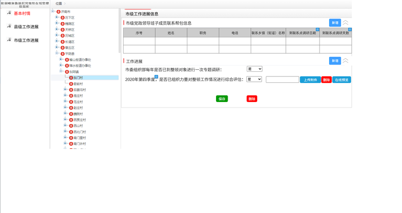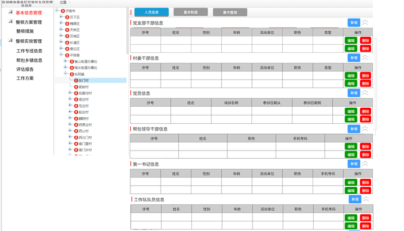 这边主要负责基本信息管理、整顿方案管理、工作专班信息、基本村情、县级工作进展、市级工作进展,还有最后的报表数据统计