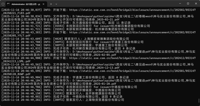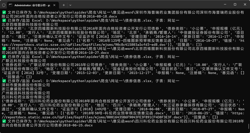 客户要求编写自动化程序,从指定网站上爬取债券的各种信息,并且自动下载文件整理到指定的目录中,还需要把最终的结果整合到excel表格里。