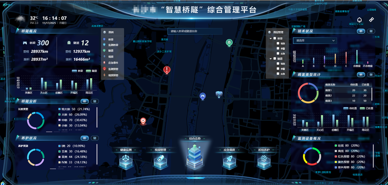 该系统主要包括巡检管理、维修养护、结构检测、桥隧基本信息维护、事件管理、病害上报、应急调度等模块。