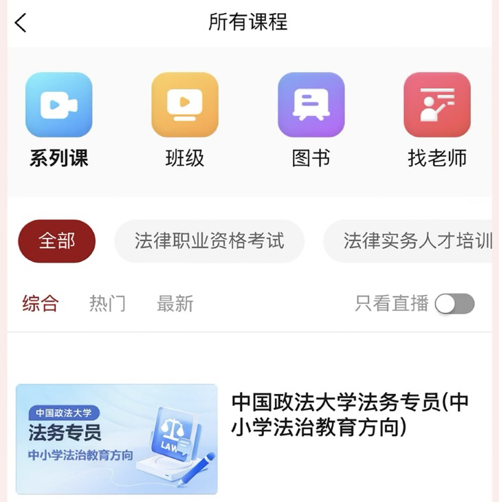 核心功能聚焦法考培训,依托与中国政法大学的合作优势,涵盖直播授课(保利威、欢拓云)、班级课程、全题型题库(主观 + 客观)、在线答疑等核心模块。融入 AI 智能教育体系,支持 AI 解析、批阅、出题等功能,适配 Web/APP 多端及多角色操作,打造 “直播学习 + 题库刷题 + AI 辅助” 的一站式法考备考平台。