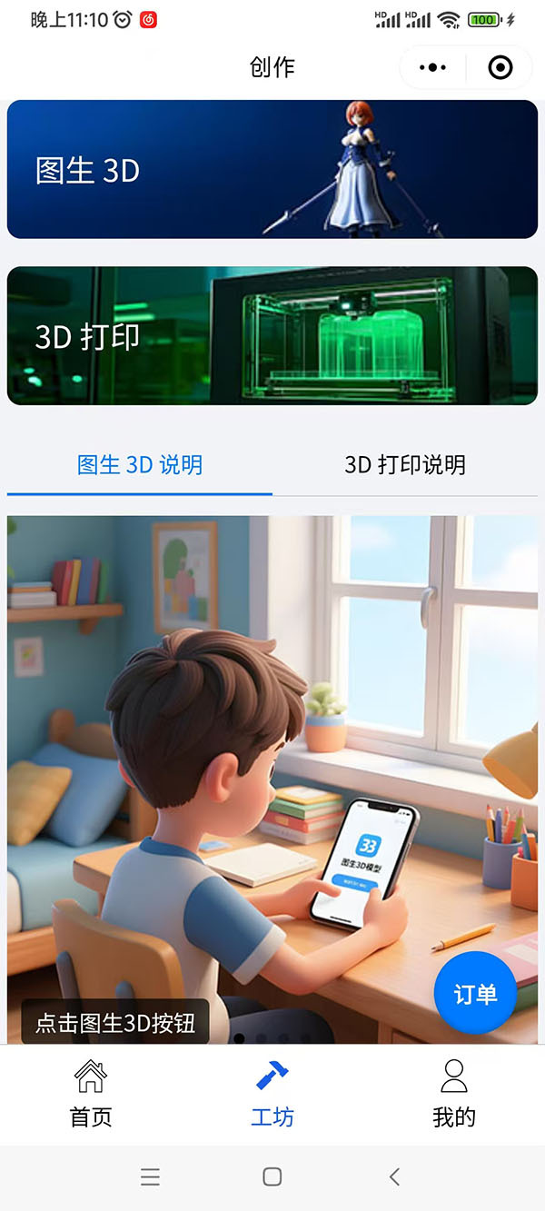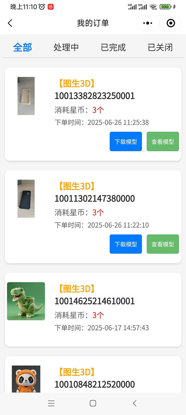 2、提供线上3D打印服务,使用生成的3D模型可以在线上使用3D打印服务打印模型并提供快递寄送服务。