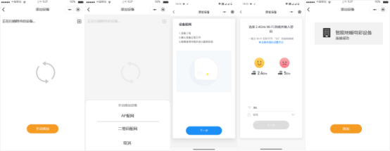 配网流程:分三步引导(1. 设备上电→2. 确认设备正常工作→3. 按说明书进入配网状态),每步清晰提示操作要求;