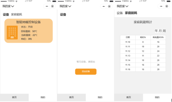 家庭耗能列表区:展示家庭耗能统计表,统计表按年月周统计,默认展示一周的数据;