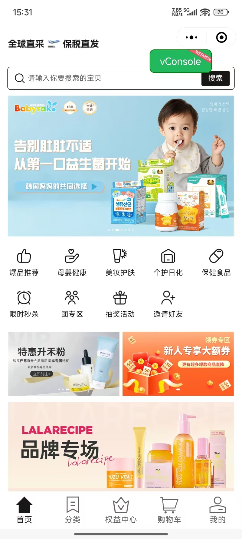 小程序提供与国内主流电商无异的流畅购物体验。支持智能搜索、精准分类筛选、商品详情(图文/视频)、用户真实评价、一键加入购物车与线上支付,极大降低用户购买海外商品的操作门槛。
