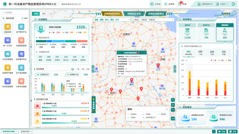 1.该系统客户为国网变电设备部,为国网集团统一管控各省电力公司当地的变电站检修与运维情况而开发的应用。