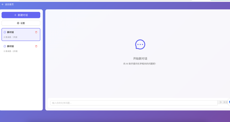 1. AI智能问答模块:集成OpenAI GPT-4,支持自然语言提问,流式输出答案,多轮对话记忆上下文,支持化学方程式和公式的Markdown渲染,为学生提供24小时在线答疑服务。