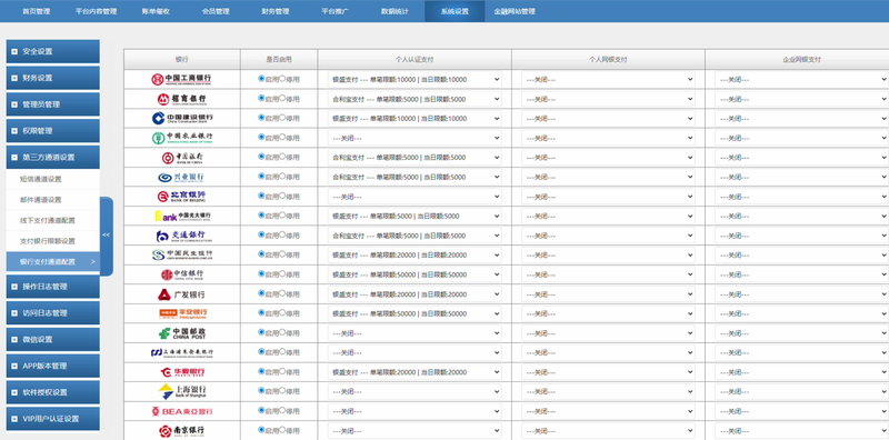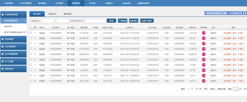 4.财务管理(支付渠道、手续费配置等,充值管理,提现审批等)