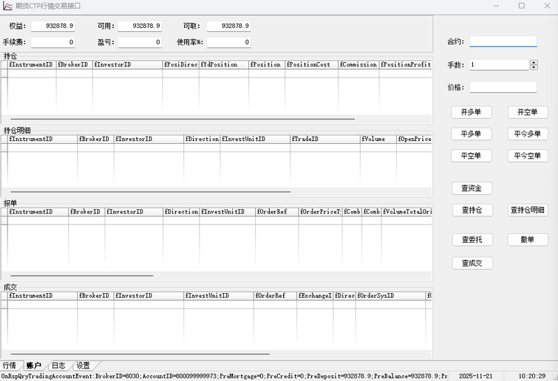 2、通过CTP交易接口获取交易账户的资金和持仓数据,写入到MSSQL中。