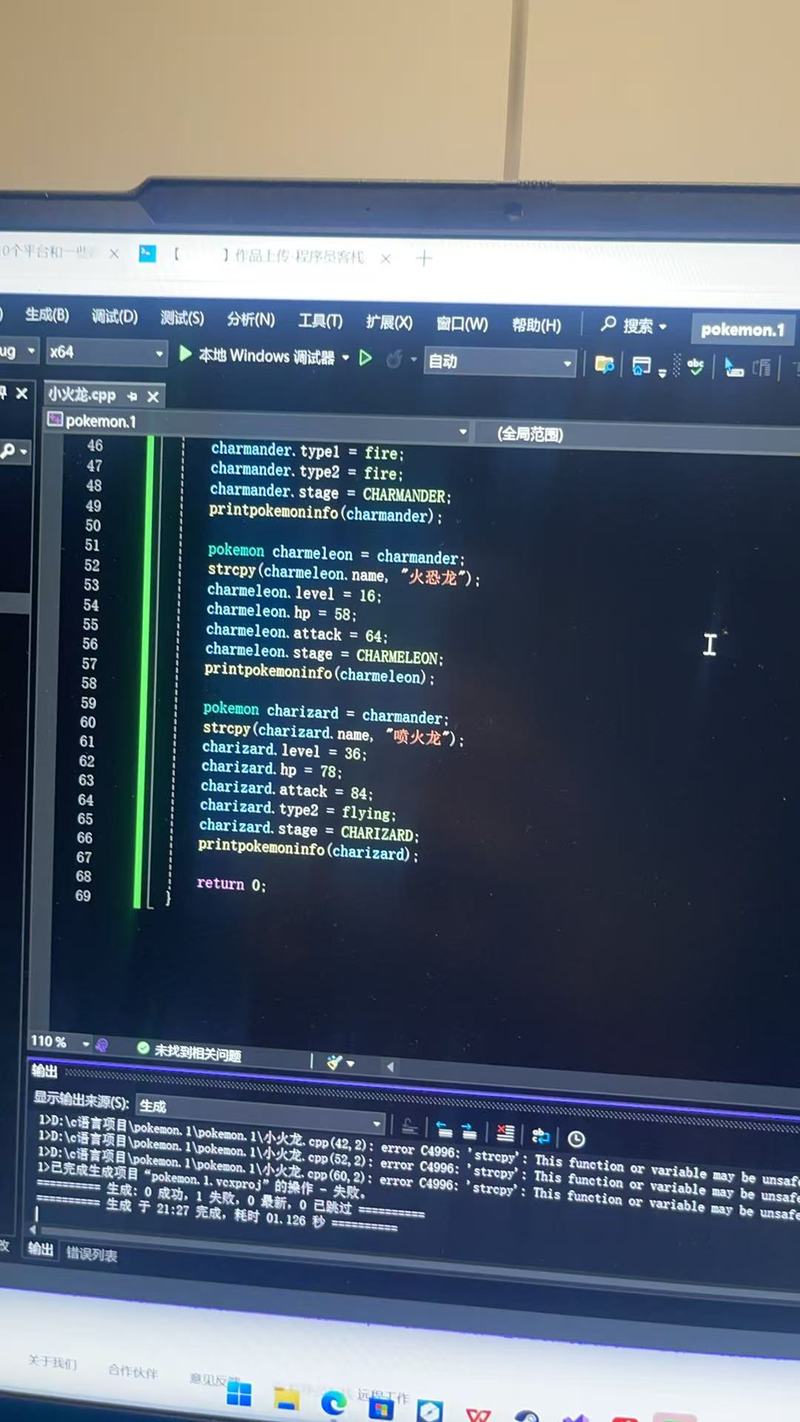 • 依赖C语言标准库:仅使用(负责输入输出)和(负责字符串赋值,如strcpy给宝可梦命名),无额外第三方库,降低环境配置成本。
