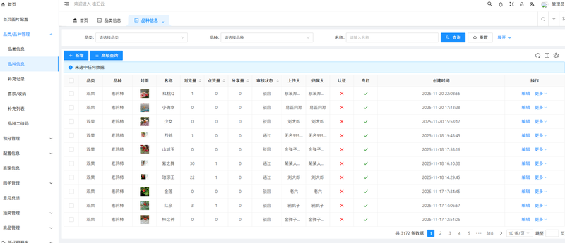 1.品种管理,管理用户上传的品种,经审核后发布,其他用户可以在首页看到该品种