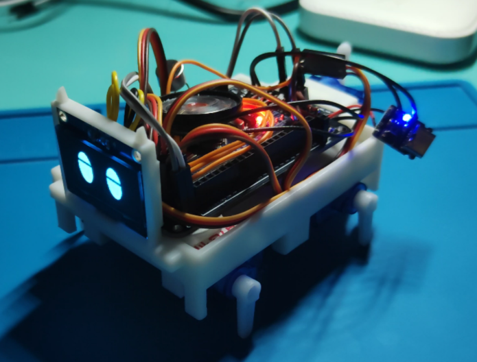 负责从概念设计到产品实现的全流程开发,包括硬件选型、电路设计与软件编程。基于STM32 HAL库进行裸机程序开发,实现语音识别模块(UART)、蓝牙模块(UART)、OLED显示(I²C)及多路舵机(PWM)的驱动与集成。设计指令解析器与任务调度器,高效处理语音和蓝牙两路并发输入,确保系统响应实时性。编写OLED显示驱动,设计并实现多帧动态表情动画。规划舵机动作组,实现点头、摇头、挥手等拟人化动作,并与语音、表情反馈同步。完成系统集成与功能测试,优化交互逻辑,提升用户体验。