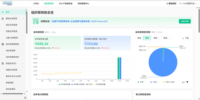 1、组织碳盘查,根据组织碳排放盘查标准内置符合国际规范的IOS14064-1:2018类别1~类别2核算模板,并可自动生成标准碳排放报告,盘查结果能满足第三方认证机构要求。支持凭证管理,可上传多类型格式凭据文件并可一键打包下载所有凭证资料。