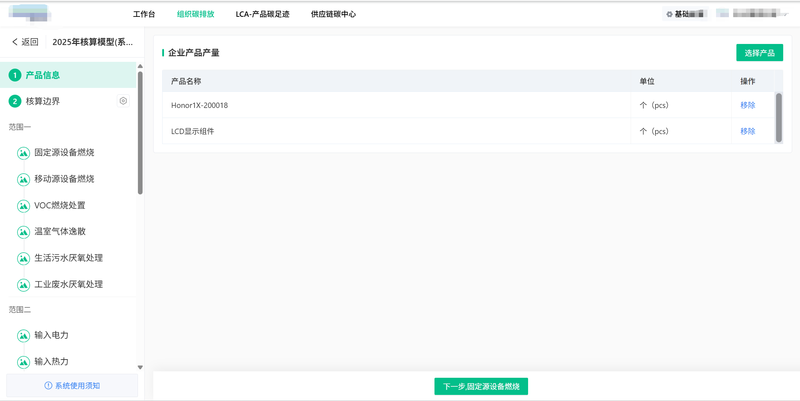 2、核算边界管理,可自定义内部碳管理层级,可按区域、工厂、车间、产线、工序、设备/设施等设定组织碳排放的核算边界。