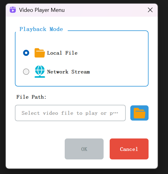 2、本地播放模块支持用户加载本地各类格式视频文件并流畅播放;网络播放模块可解析网络视频链接,实现在线播放;倍速控制模块提供 0.5 - 2.0 倍的播放速度调节,满足用户对视频播放节奏的不同需求;视频跳转模块允许用户通过时间轴或输入时间点快速跳转到视频任意位置,极大提升了视频观看的灵活性与效率。