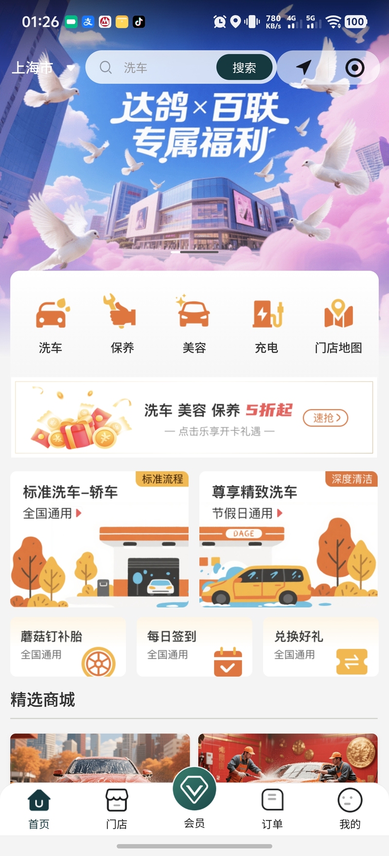 2、主要通过查找附近的门店信息,选择想要购买的洗车产品