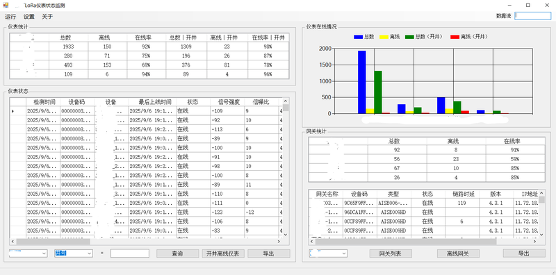C#后端、桌面应用、物联网,从lora数采服务器提取仪表及网关信息,跟踪分析仪表状态及故障原因并列表统计