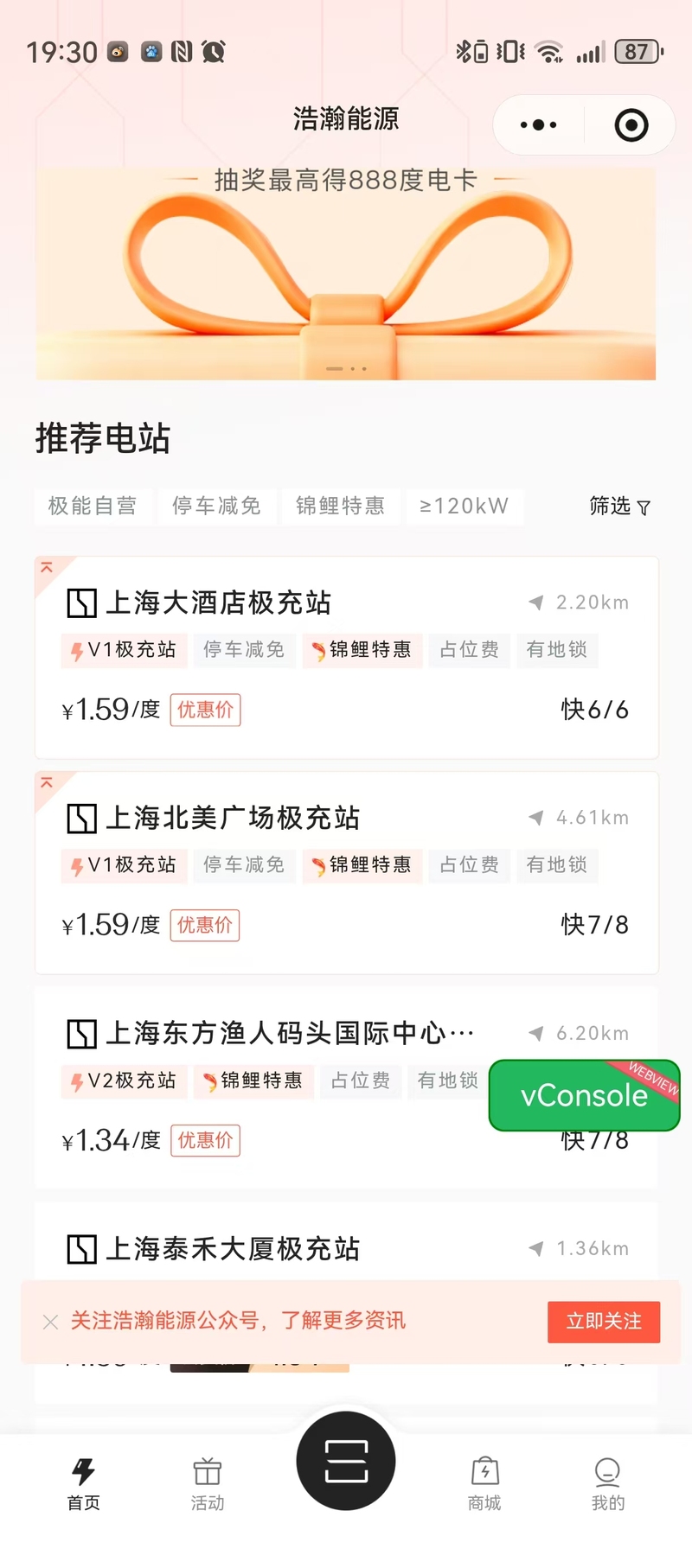 浩瀚能源小程序是极氪品牌旗下的一款提供了充电地图,汽车充电,活动中心,商城,用户个人信息等多功能的微信小程序。