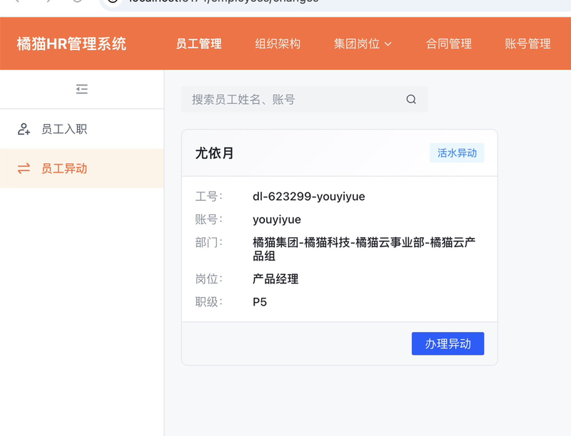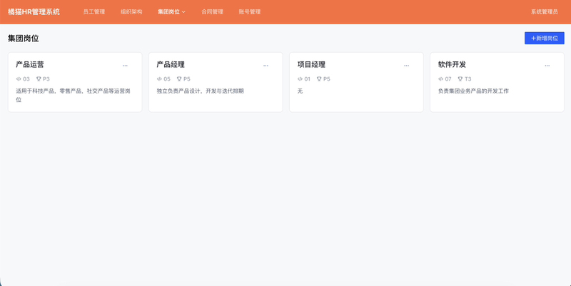 本产品专注于企业内部组织与人员基础信息的集中化管理,支持灵活配置公司架构、部门划分、岗位设置及职级体系,实现组织结构的可视化与动态调整。同时,覆盖员工从入职登记、劳动合同管理到岗位调动的全流程操作,并自动创建和维护员工账号。系统通过统一的数据模型确保人员信息准确、权限分配清晰,为后续打通内部员工身份体系奠定基础。产品设计注重轻量化与扩展性,可作为独立的人事数据中枢,为未来接入福利发放或其他内部服务提供标准化的员工账号与组织数据支持,不依赖OA、报销或学习等复杂模块。