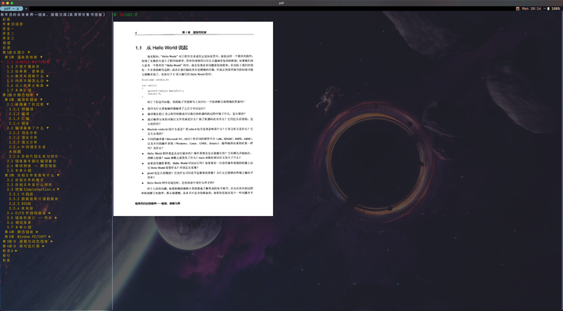 在 支持 iterm2 图像协议的 终端中 打开并渲染 pdf 文件,对 pdf 格式进行解析,支持目录检索展示,页码解析,指定页面跳转,pdf 页面在终端渲染 等功能