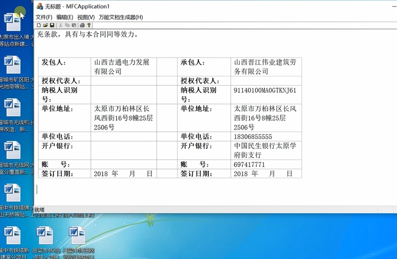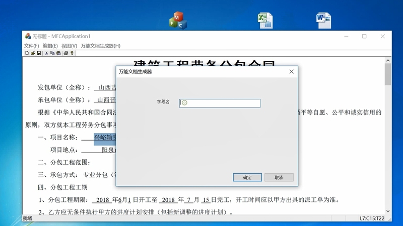 固定格式的分册设计、合同文本在人工编制过程中,极易发生丢三落四、张冠李戴的问题,人工检查费时费力。而有着明显文字错误的文本或合同,又会给生产建设带来极大的不便与不利。本软件即为批量、准确生成固定模板文档而生。