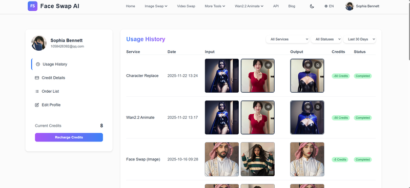 核心功能包括视频上传、人物检测、面部关键点识别、AI 换脸模型推理以及最终的视频合成输出。系统支持多格式视频的自动转码、画质优化、时长裁剪,并结合 FFmpeg 完成高效的音视频处理。我负责整体架构设计、后台任务队列、换脸算法对接、前端交互界面以及异常处理流程。项目具备高并发处理能力,并支持自动任务状态回调、队列调度和错误恢复。在实际应用中可用于短视频制作、角色替换、创作者内容辅助等场景,整体性能稳定,用户体验流畅。