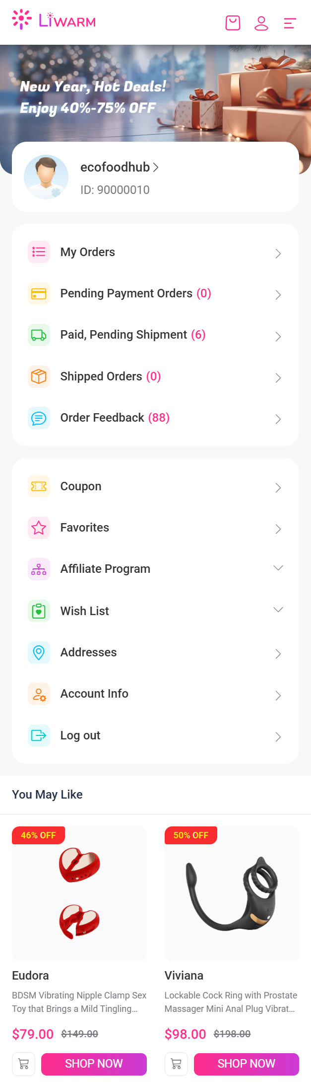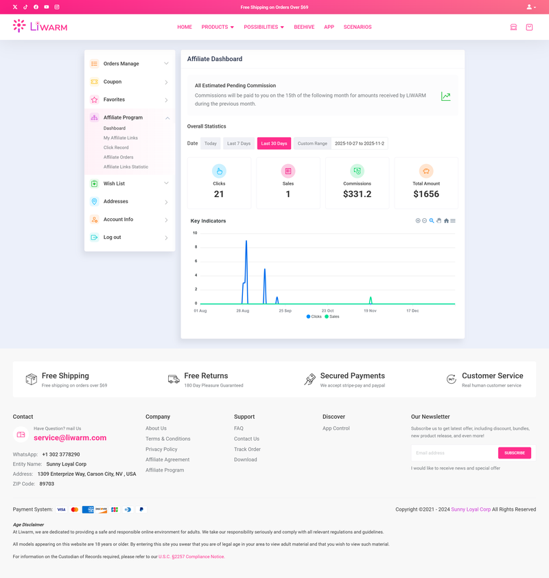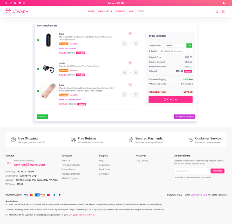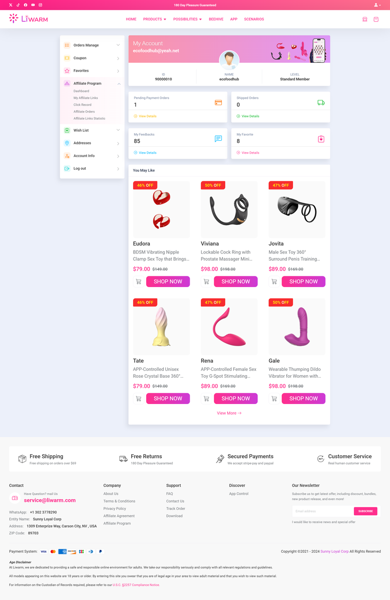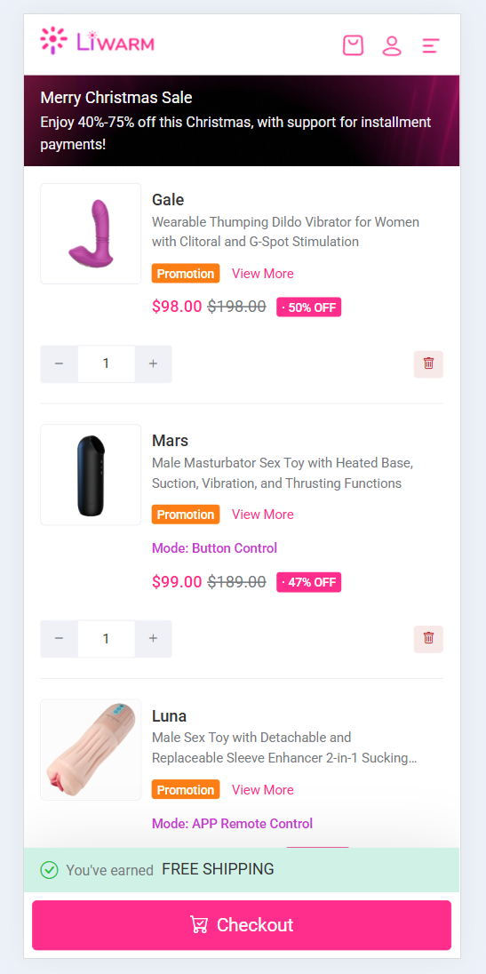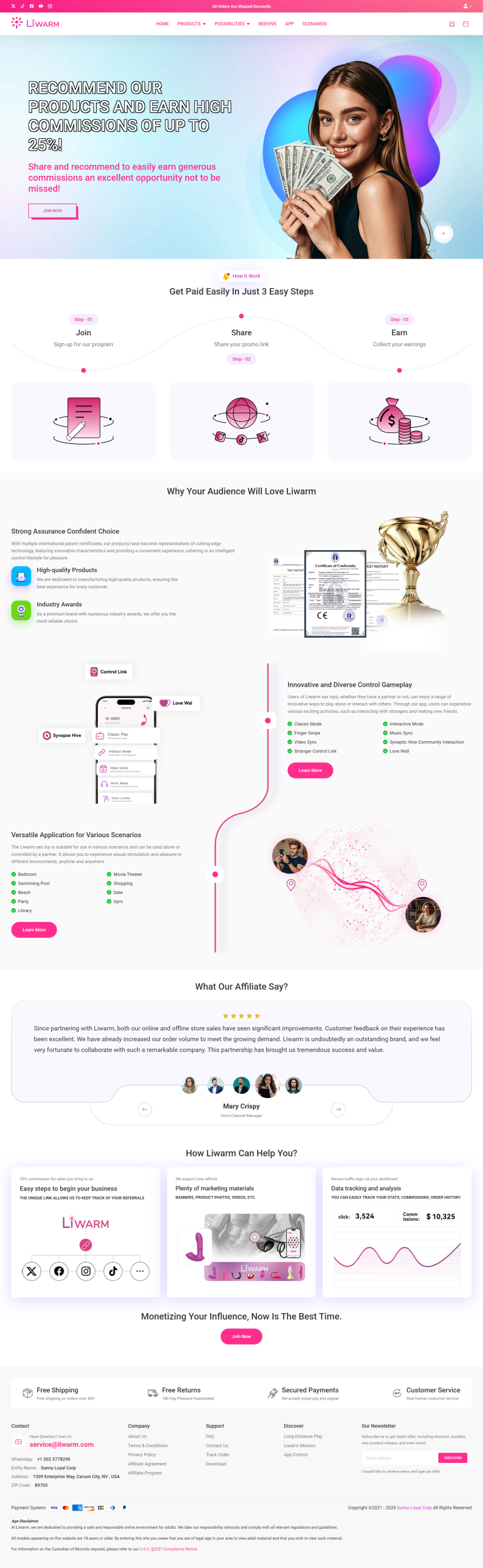 在Liwarm,探索私密生活的无限可能。作为专业的成人用品跨境电商平台,我们深耕全球成人用品市场,严选符合欧盟 REACH、日本安全标准等多地区合规认证的产品,从设计感满满的情趣单品到智能健康辅助设备,满足不同需求。