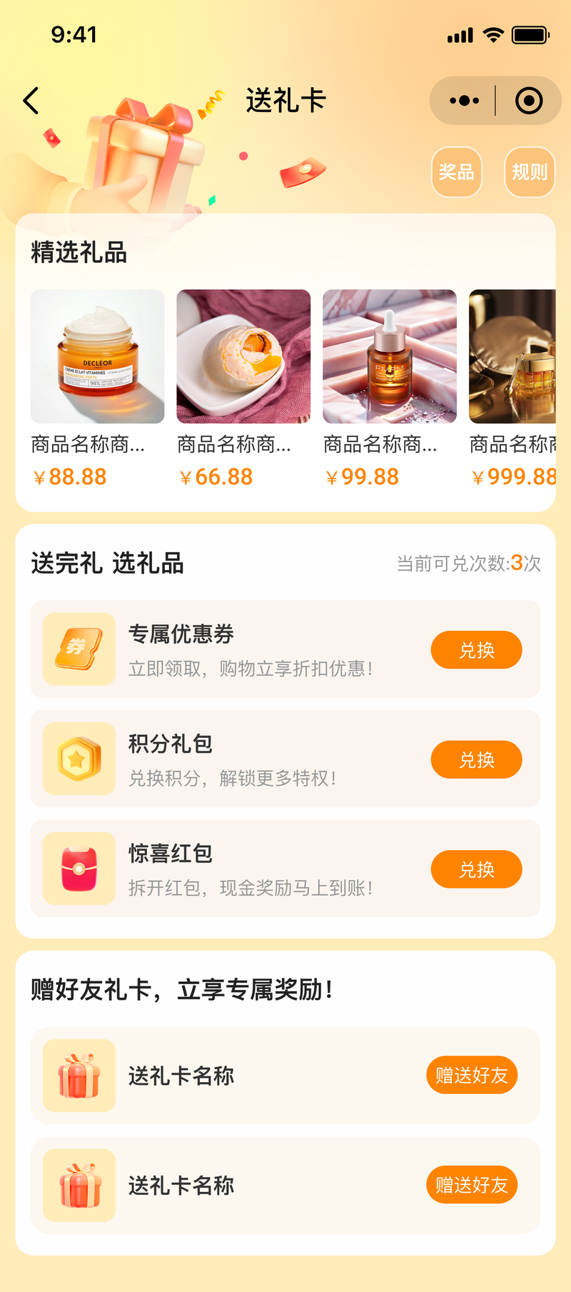 【留存运营】搭建视频号小店会员与私域互通的会员体系,通过送礼物有礼、返现卡、好评有礼、口令红包等营销互动玩法提升用户活跃度。