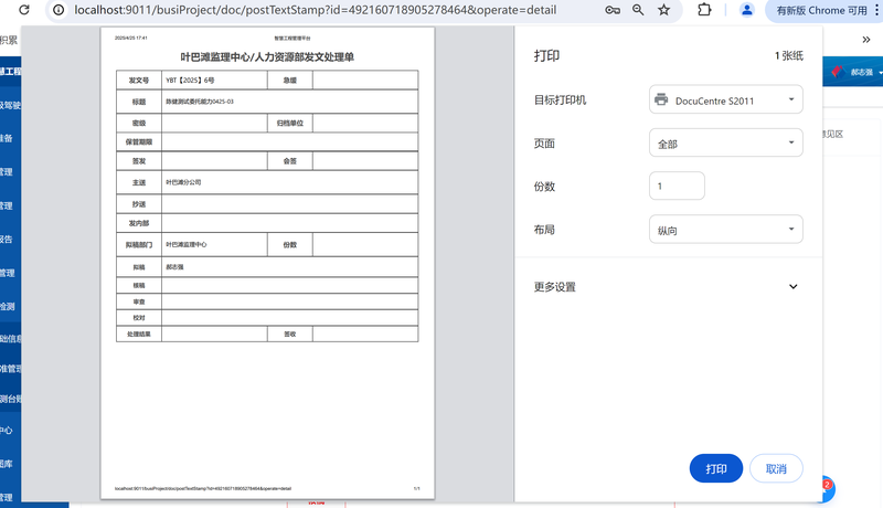我主要负责公文管理、知识库管理、工程图库、数据报表统计、公文流转审批,套红,盖章以及项目后期的迭代和维护。