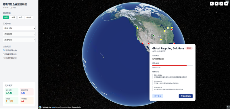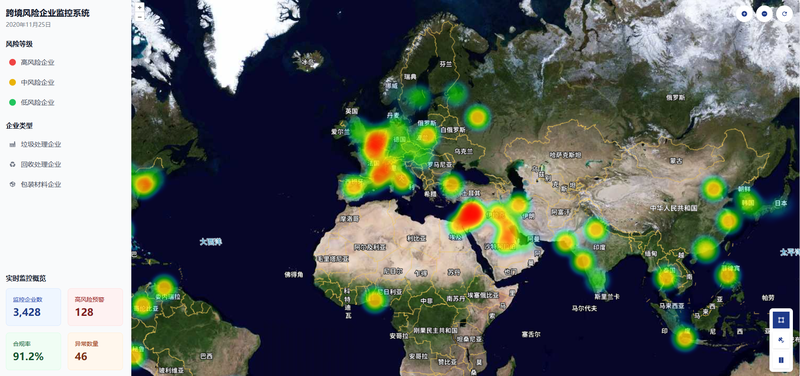 境外风险企业监控系统可整合全球企业信息、航运数据、贸易记录,对境外垃圾回收公司进行全景画像,分析其交易行为、货运轨迹是否存在风险。一旦某个环节出现违规,可迅速锁定关联企业,实现精准打击。
