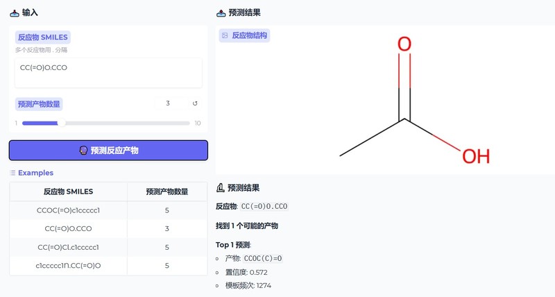 基于图注意力网络(GAT)和反应模板的有机化学反应产物预测工具