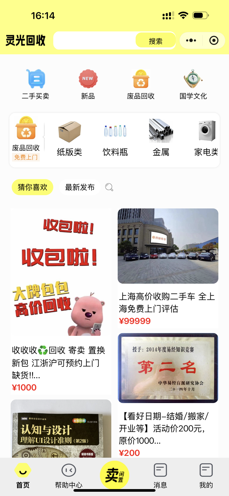 灵光回收核心功能梳理(聚焦废品回收 + 二手买卖,极简闭环)