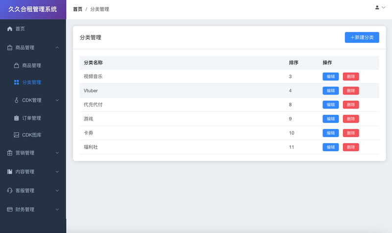 4. CDK商品管理系统(核心亮点):支持账号类、代充类、卡券类三种CDK类型,实