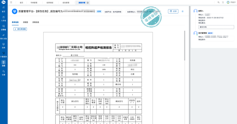 质量管理平台是以质量检测管理为主线,贯通车间到质量保证部的入库检、过程检,基于