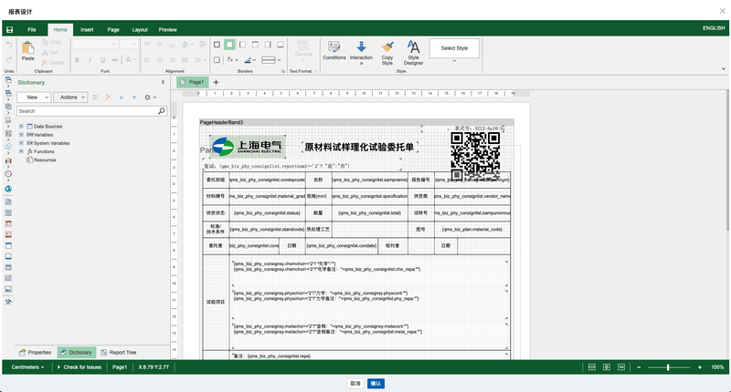 集成stimulsoft前端报表生成器,实现委托单、质量报告开发、数据处理以及打印功能;