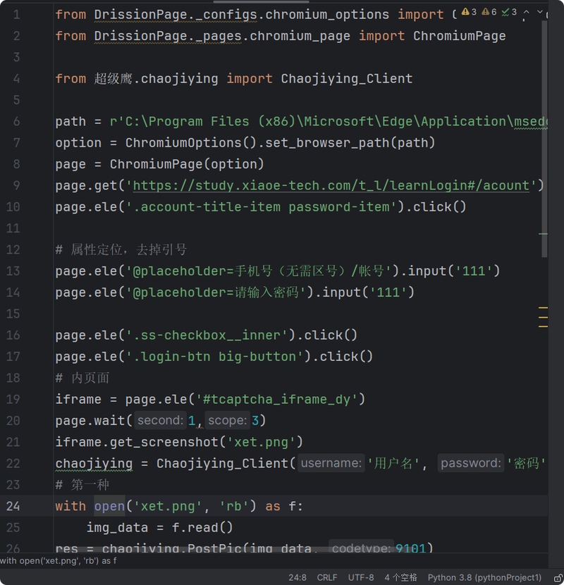我通过浏览器识别并过验证码,使用了自动化爬虫和打码平台识别,需要会使用自动化工具和通过程序借助打码平台,有时会遇到内置页面iframe选择元素要用iframe.eles()