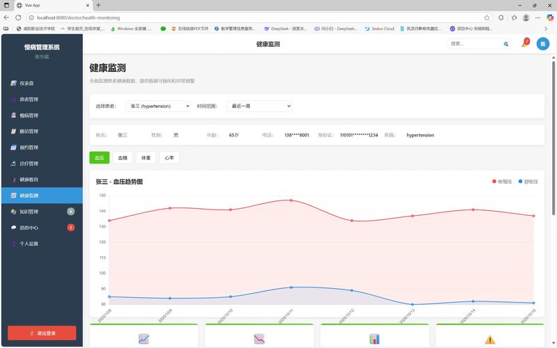 慢病一体化管理平台是基于Vue 3、Vuex、Vue Router构建的医疗健康管理系统。该平台为医生、患者和管理员提供全面的慢病管理解决方案,采用前后端分离架构,前端使用Chart.js实现数据可视化,Axios处理HTTP请求。