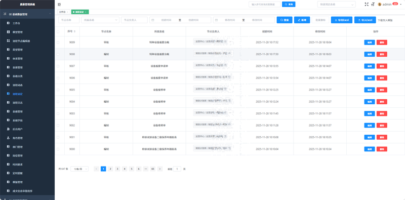 基础设施管理:①软件需要实时对组织生产、检验试验、特种和办公等设备台账的全方位管理;②软件需要定时通知和指导相关人员完成各类设备的一级保养、二级保养、点检、点检检查工作,并根据结果完成相应的处置流程;③软件需要实现一键完成报修、报废等流程的审核批准功能。