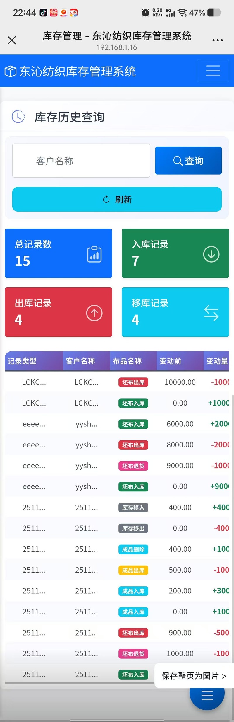 最终交付的系统具备完整的库存管理功能,支持多用户并发操作,实现了纺织企业库存管理的数字化转型升级。