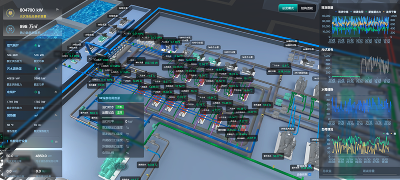 能耗监控:ThermalMode 模块提供左右卡片与图表,展示各重要设备/区域的实时温度、负荷、收益等关键指标。