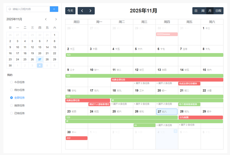 一体化日历:节假日/调休/农历/节气/休假叠加显示,跨日/全天/叠加冲突处理