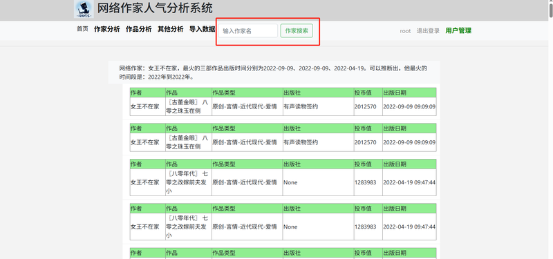 整个系统分为四大模块。一是数据爬取模块,主要用到requests和bs4包来完成。二是数据存储模块,包括数据库信息配置和ORM模型设计,用到flask带的SQLAlchemy包来实现。三是可视化图片生成模块,用到pandas进行数据清洗,和pyechart进行图片生成。四是功能实现模块,包括了注册、登录功能,数据更新功能,以及各数据可视化分析模块的跳转功能;功能模块涉及到后端接口的设计,后端的html设计,以及前端html的结合运用,连接前后端的jinja2模板运用。