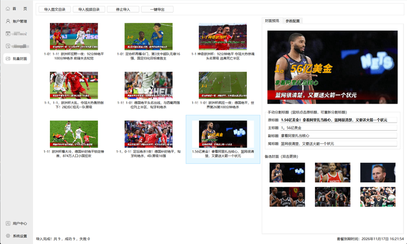 3、批量封面:为视频批量生成封面,可预设封面模板