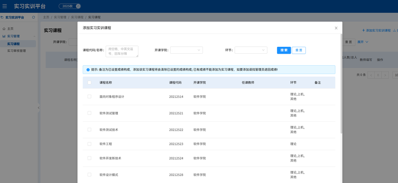 系统以统一身份认证为入口,打通 “实训准备 - 过程实施 - 考核评价 - 数据沉淀” 全流程,核心功能模块如下: