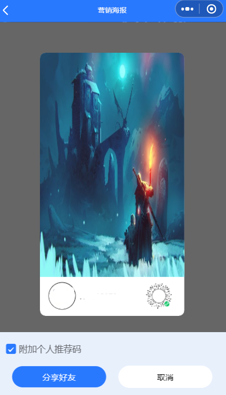 提供海报管理、发布能力,支持快速制作企业营销物料(如活动推广、产品宣传、通知公告),附个人推荐码,帮助代理商一键生成海报,快速分享好友。