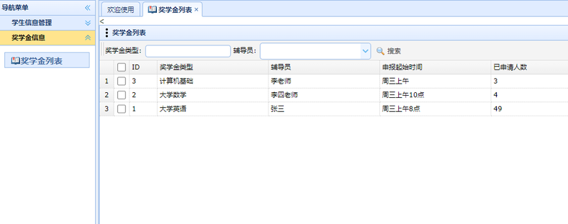 1.分三级权限,学生,教师,辅导员。确保奖学金评定过程的有序性。
