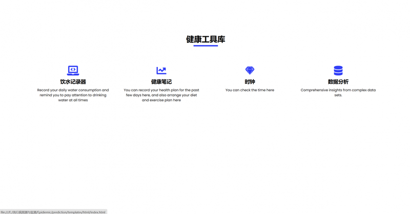 2.主要功能描述:糖尿病预测系统支持用户输入年龄、体重、血糖等健康数据,通过机器学习模型生成患病风险评估报告;糖尿病日常养护模块根据用户健康状况提供个性化饮食、运动等养护建议;健康工具库集成安全自测、数据录入、体检管理、数据分析等实用工具;健康数据管理可记录并可视化展示用户的历史健康数据;糖尿病防范措施模块提供针对性预防策略与干预指导,全方位满足用户糖尿病健康管理需求。