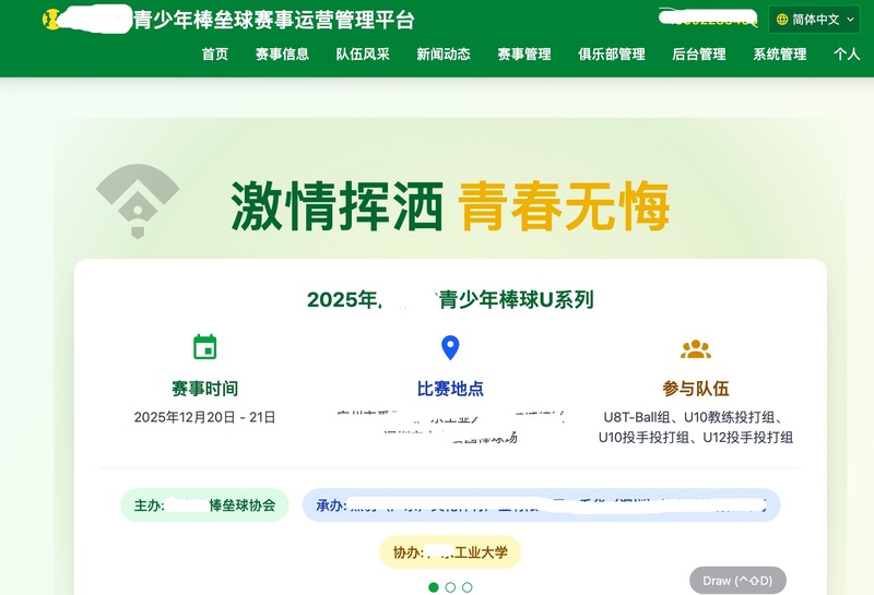 为一家棒垒球协会规划面向青少年及成人的棒垒球赛事智能数字化运营管理平台。把一个棒垒球赛事的数字化运营管理分为赛前,赛中,赛后三个阶段来划分,每个阶段有不同的数字化工作内容,打通赛事全链条的所有环节。