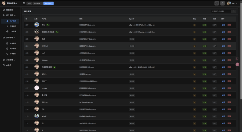 1.大学生期末资料共享程序