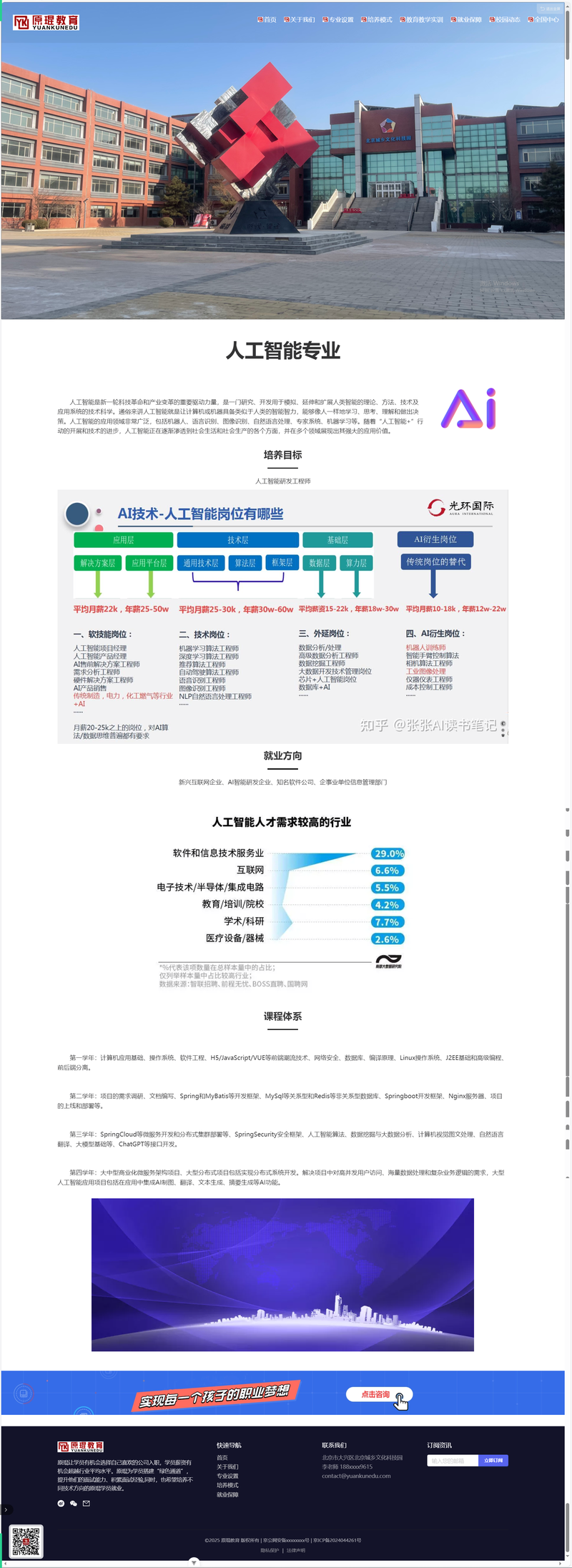 2、行业场景:面向高中生、退伍军人、大学生等潜在学员群体,通过展示专业设置、培养模式、就业保障等核心信息,吸引用户咨询报名,助力教育机构实现获客增长。